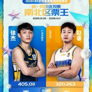 北京时间1月12日,CBA官方公布了全明星赛首发球员票选第一周票数,广东队后卫徐杰和北京队后卫赵睿分别当选南、北区票王。...