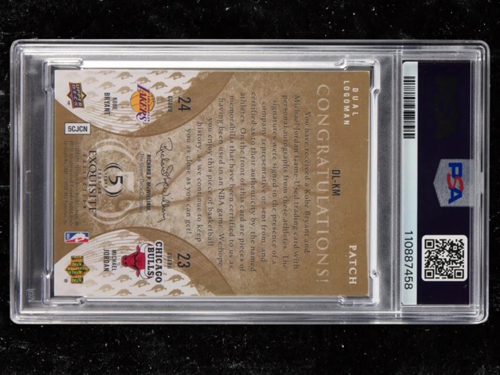 “本次拍卖的这张双人物卡片,是唯一一张仅包含迈克尔-乔丹和科比-布莱恩特两位巨星的卡片。这使其成为令人惊叹的Upper Deck系列中最受追捧的一张。而且,由于科比-布莱恩特在2020年的不幸离世,这张卡片将永远是独一无二的孤品。”